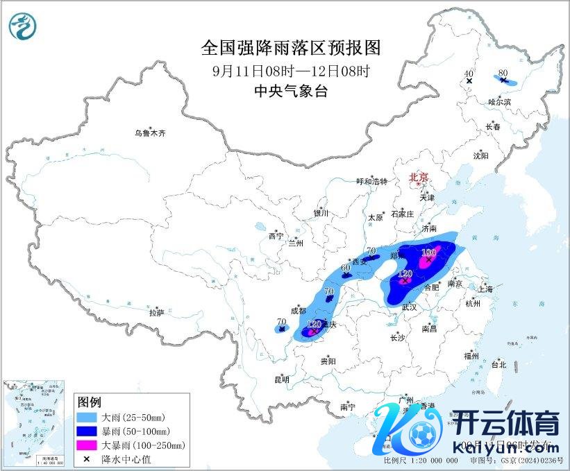 瞻望,9月11日8时至12日8时,河南大部、山东南部、安徽中北部、江苏北部、湖北中部、陕西南部、四川盆地中部和南部等地部分地区有大到暴雨,其中,河南东部和南部、山东南部、安徽北部、江苏北部、四川盆地南部等地部分地区有大暴雨(100~180毫米)。上述部分地区伴有短时强降水(最大小时降雨量20~50毫米,局地可逾越60毫米),局地有雷暴大风等强对流天气。